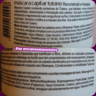 Composição da mascara capilar tutano e ceramidas Miss Anne: